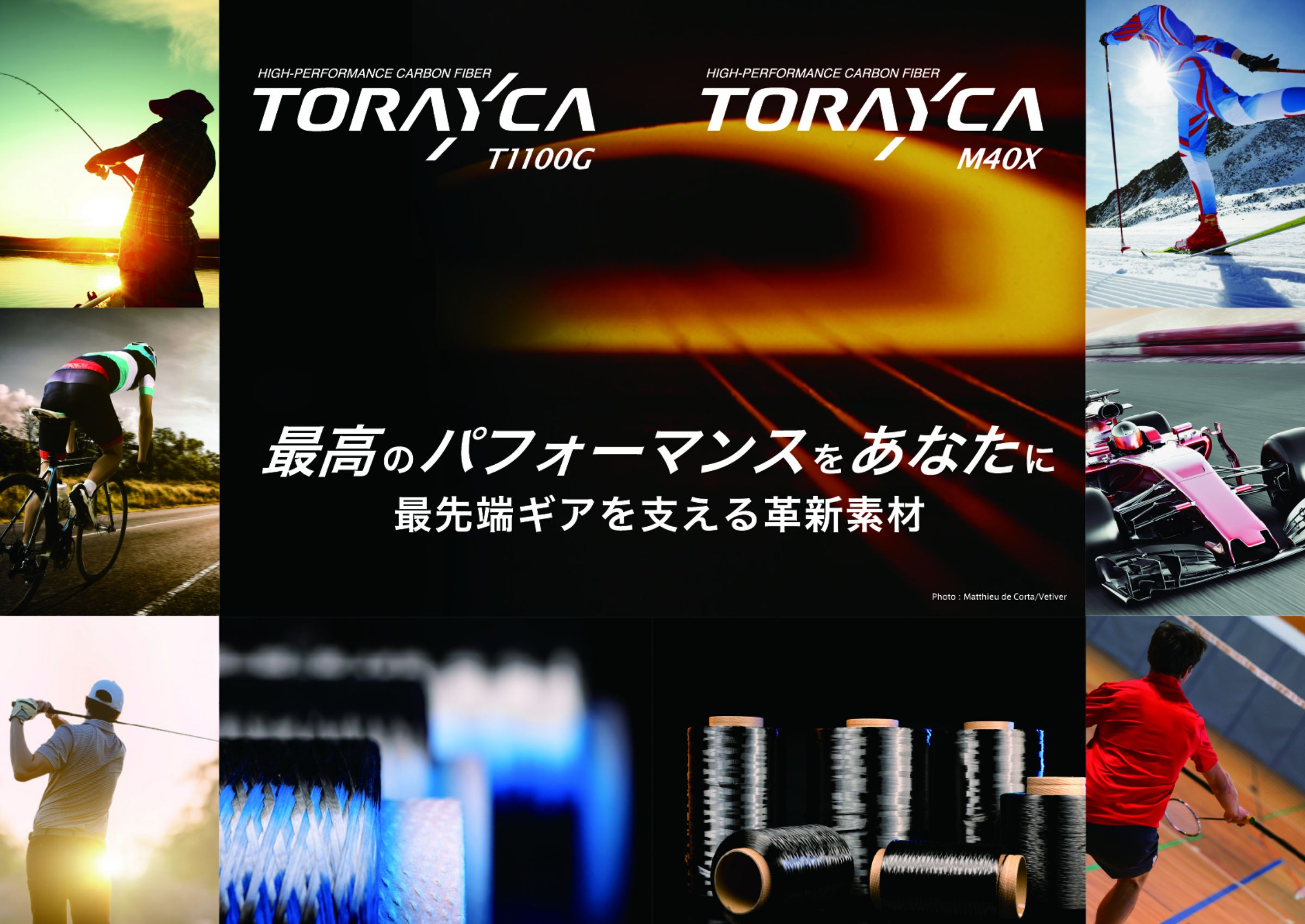 T1100GとM40Xは、これまでの炭素繊維では難しいと考えられてきた強さ(強度)と硬さ(弾性率)を高いレベルで兼ね備えた素材です。これらを使うことにより、ゴルフシャフトや釣竿、自転車などのスポーツ用具のパフォーマンス向上が期待できます。